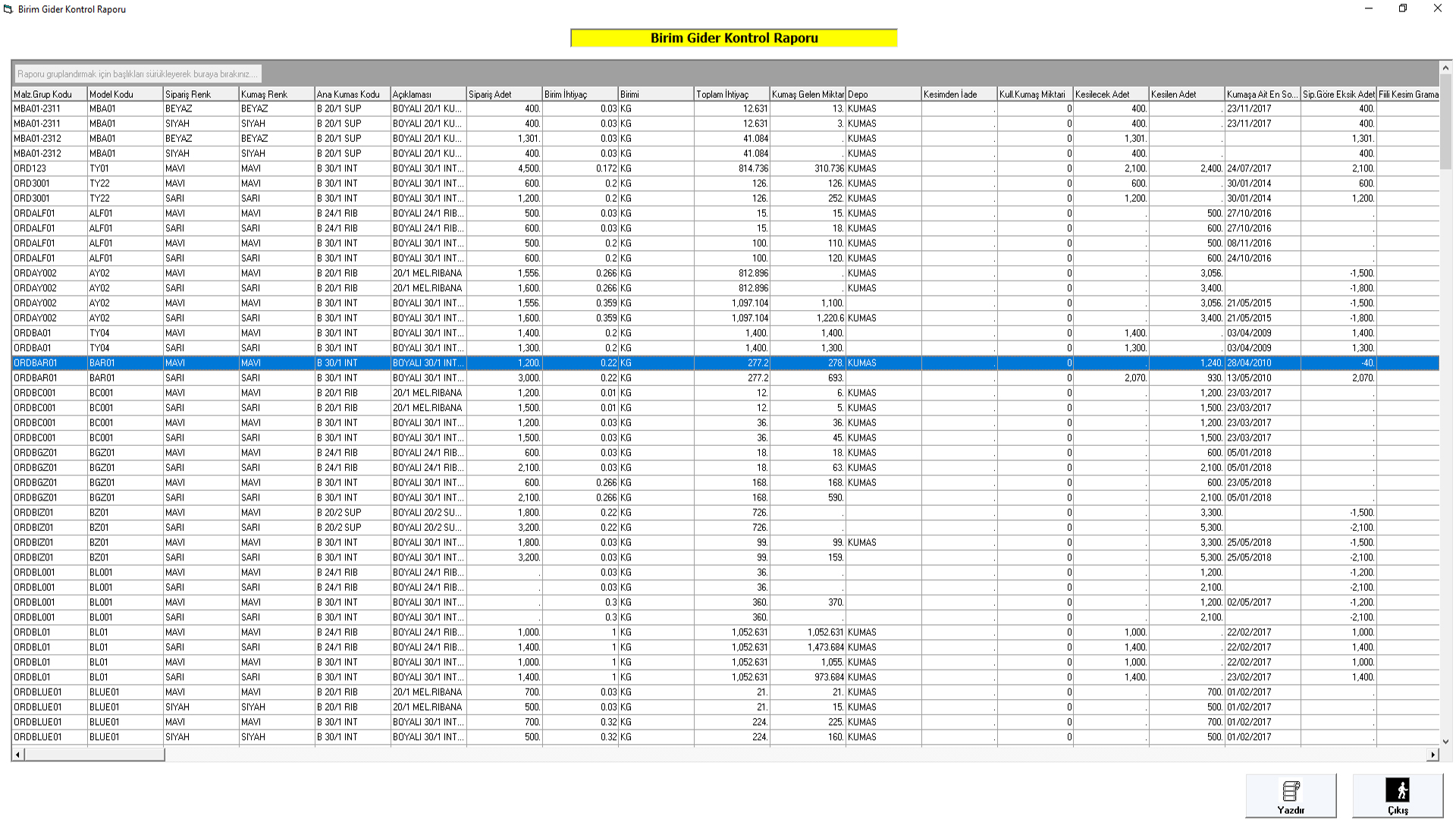- “Birim Gider Kontrolu Raporu” ile tüm malzemelerinizin planlanan ile gerçekleşen sarfiyatlarını karşılaştırabilirsiniz.