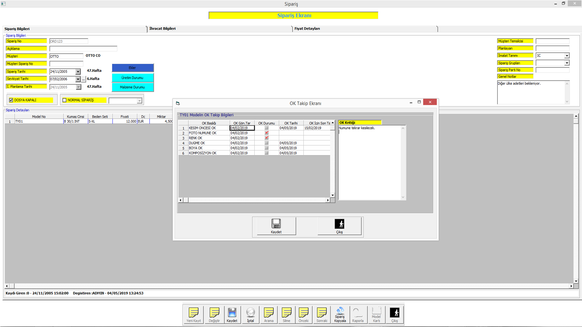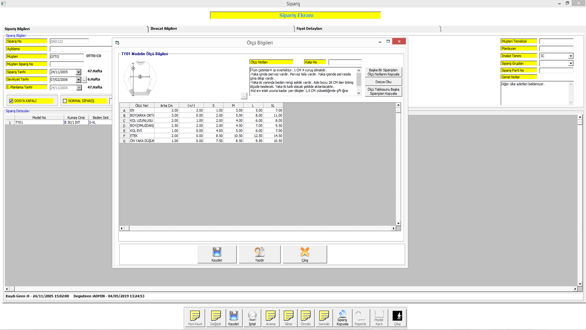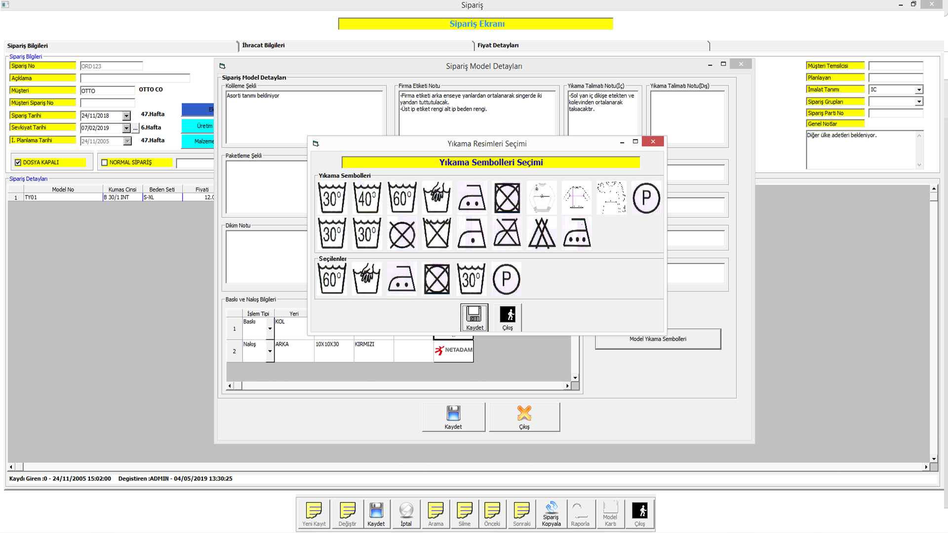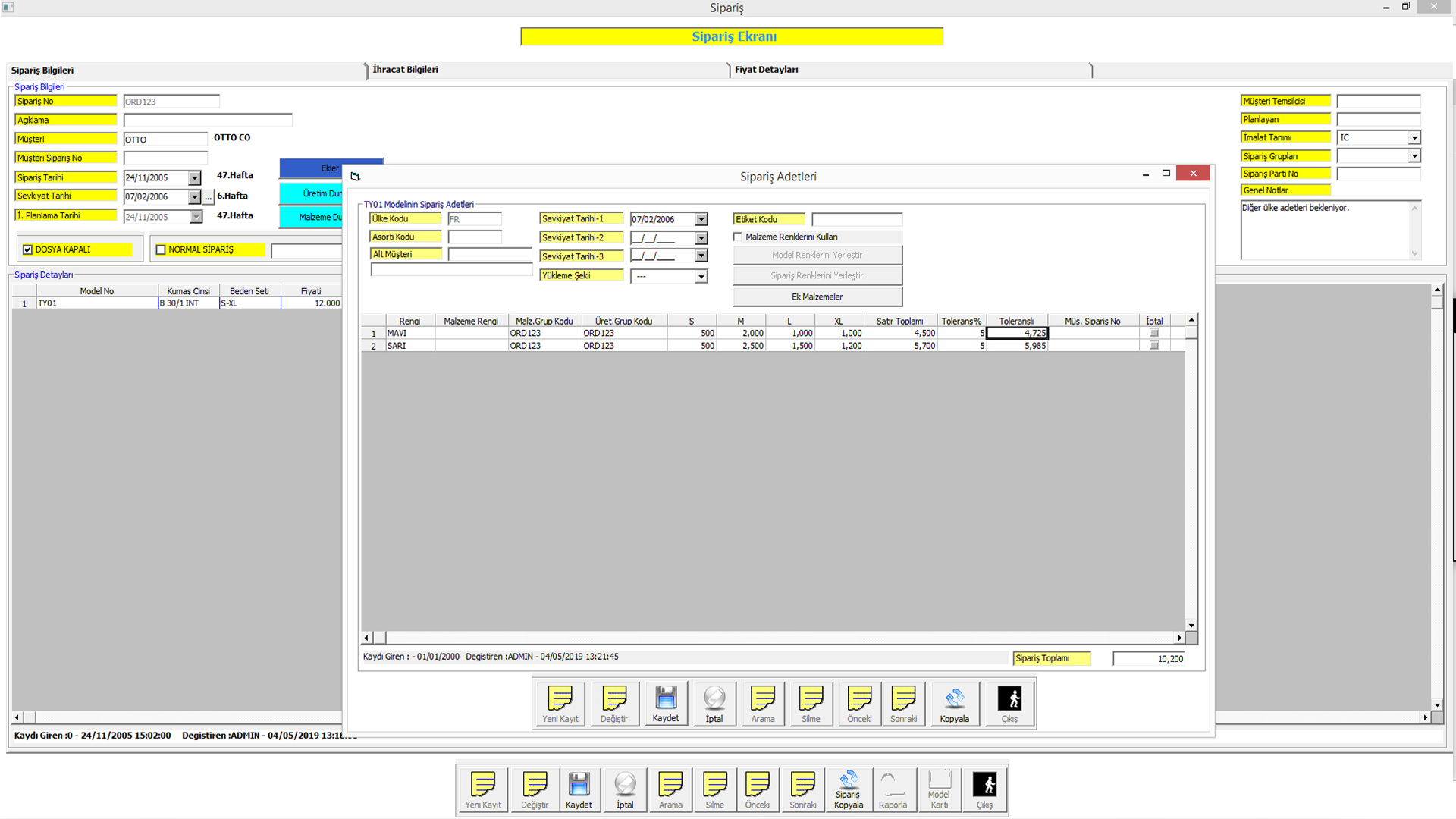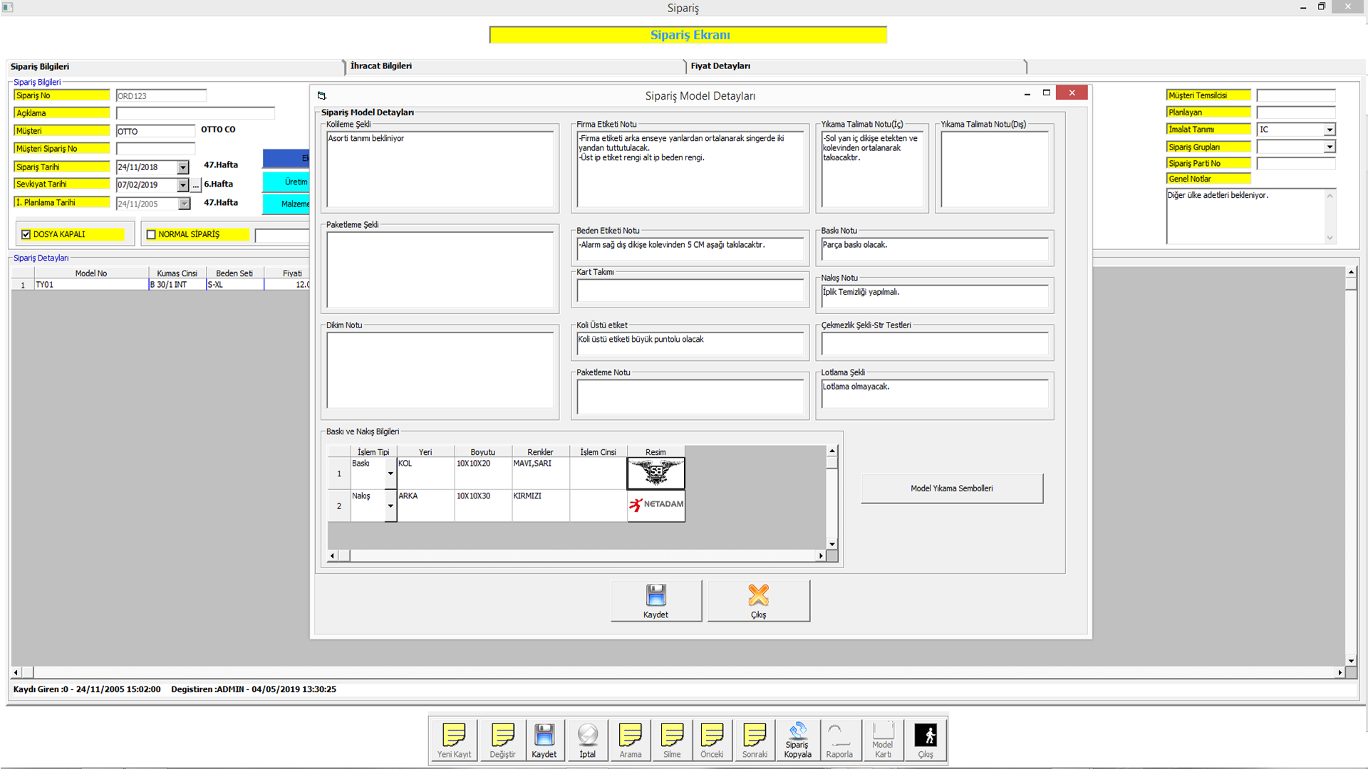 StarTex Konfeksiyon Yönetim Programı‘nın Sipariş Modülü: