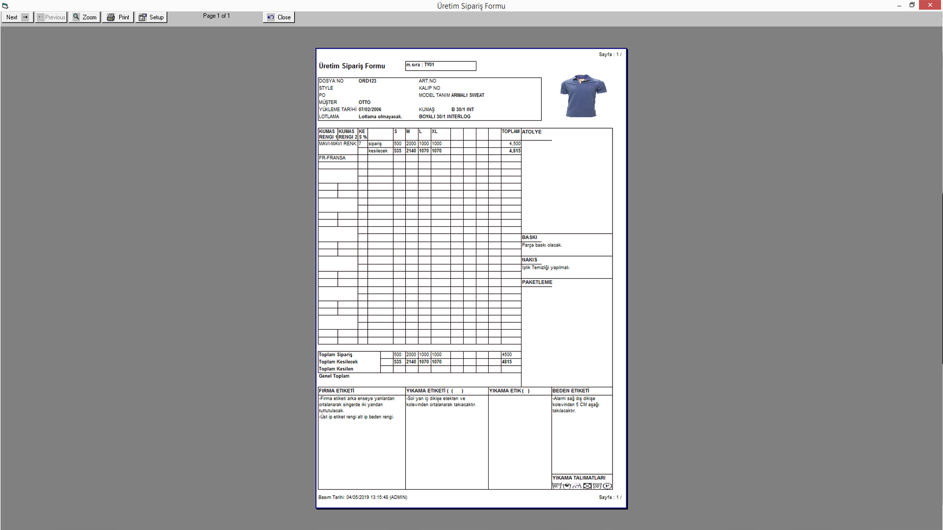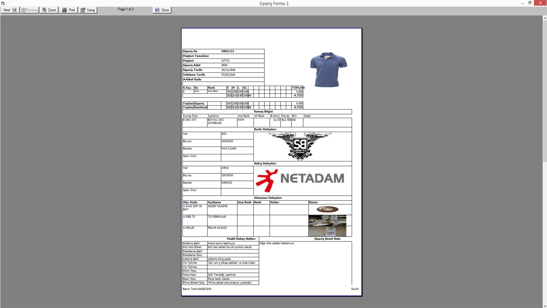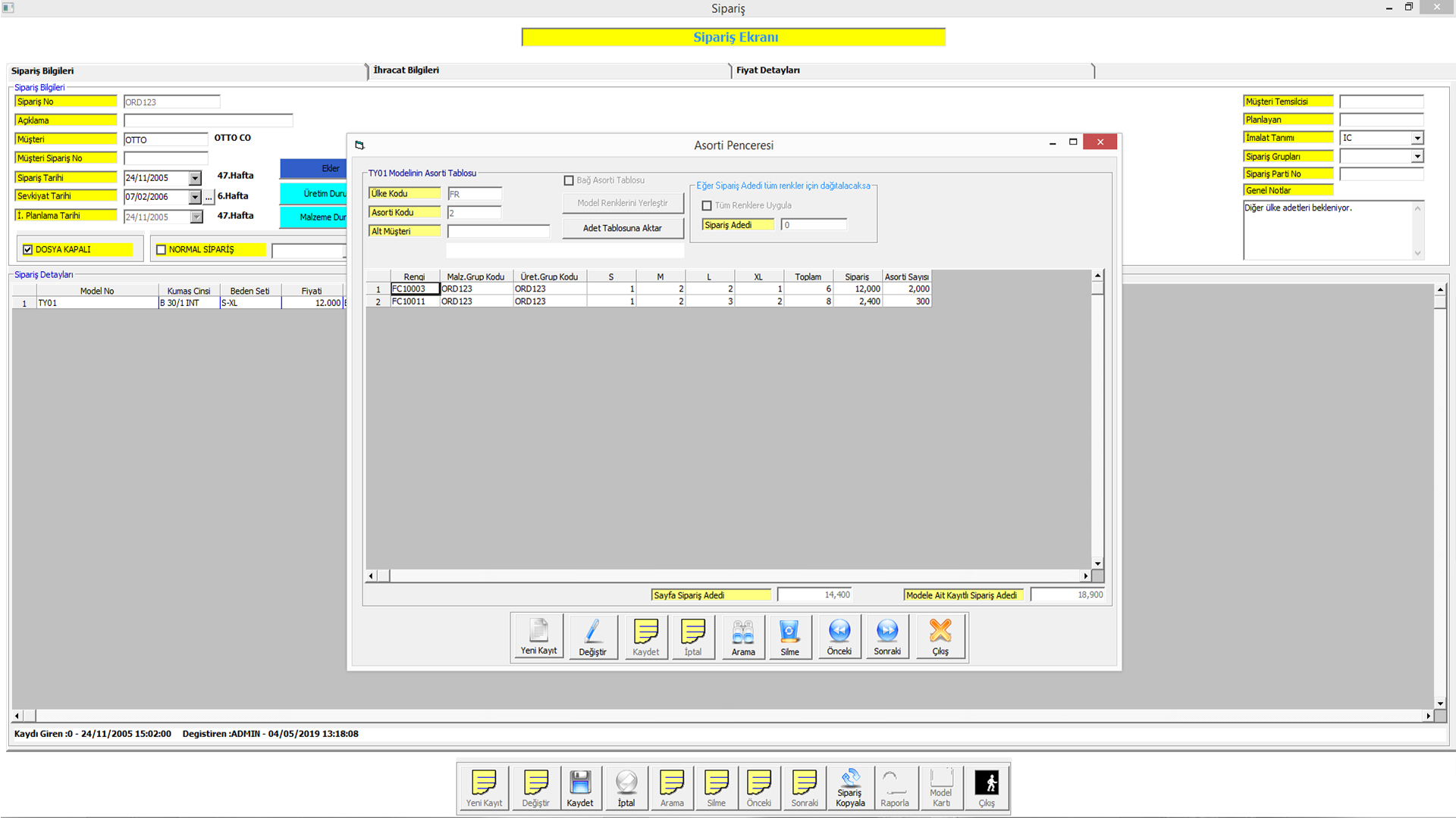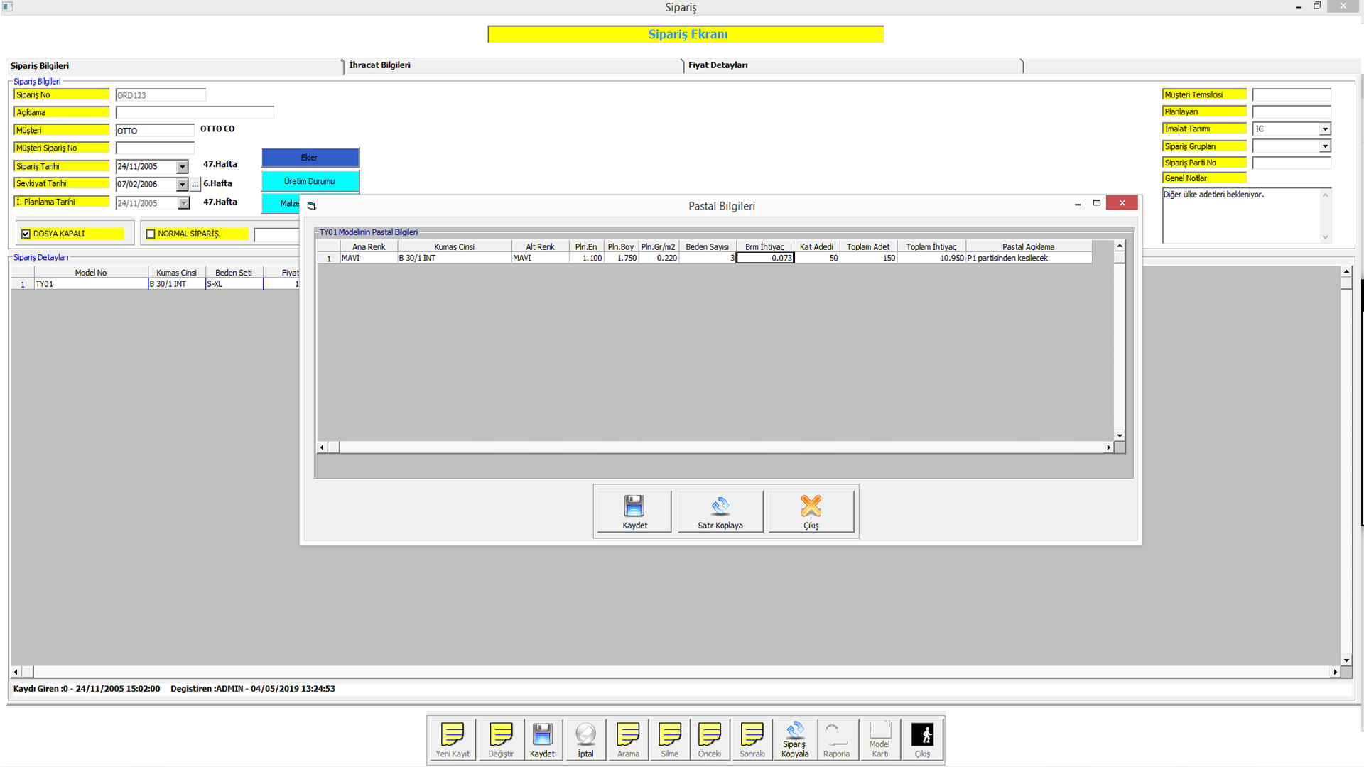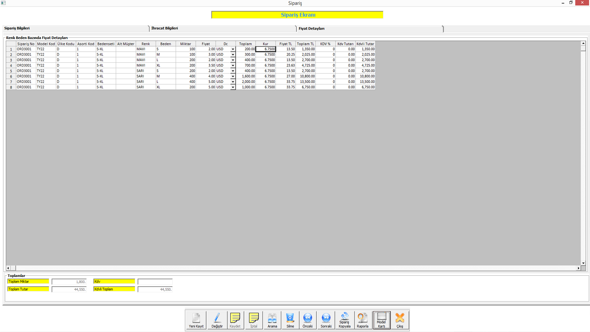 StarTex Konfeksiyon Yönetim Programı‘nın Sipariş Modülü: