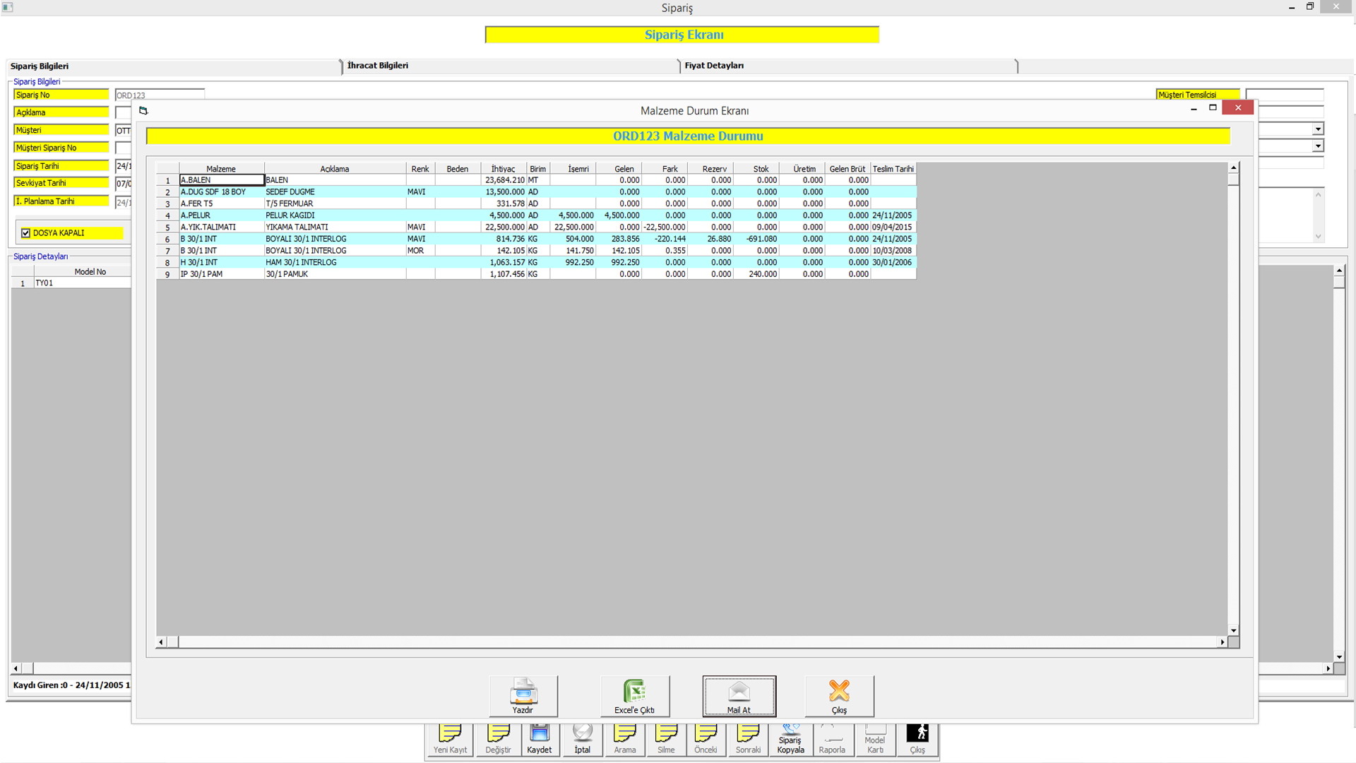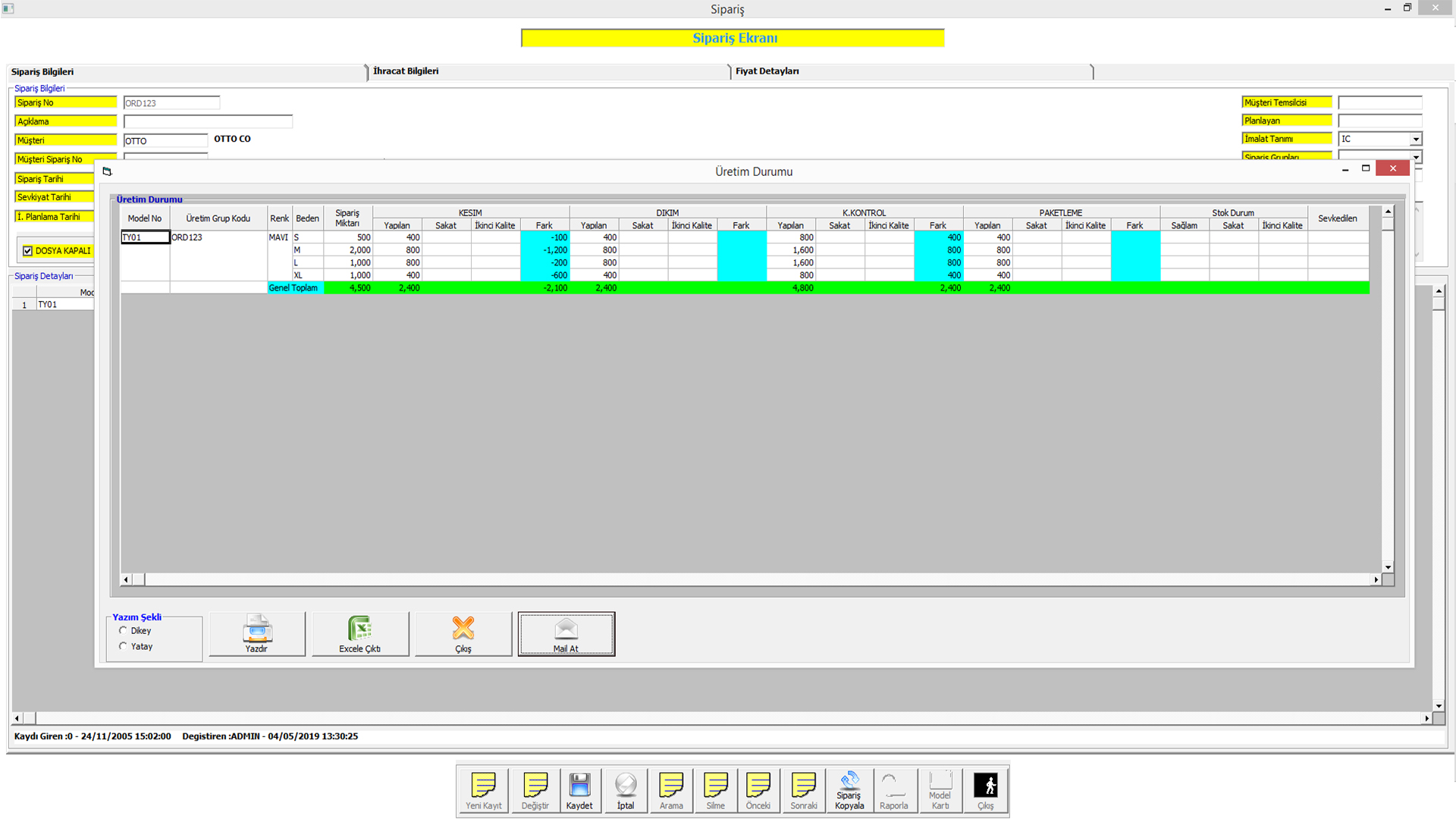 - Tek tuşla o siparişin üretim durumunu analiz edebilirsiniz.